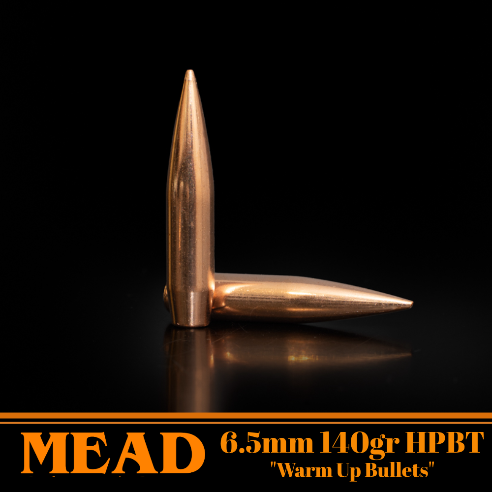 These are brand new 6.5mm 140gr Hollow Point Boat Tail bullets manufactured by Mead Ammunition, classified as warm-ups because they're from the beginning of a production run. They're still highly consistent and provide an excellent opportunity to load and shoot for less.
