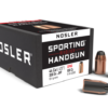Whether you punch paper, shoot steel or use your handgun for hunting, Nosler ensures you have the very finest in accuracy, consistency and overall quality. Designed to expand rapidly upon impact, the pure lead core is copper-alloy jacketed for maximum bullet stability and balance while further enhancing accuracy. The bullet´s well-defined cannelure holds the jacket and core together and allows a tight crimp, eliminating bullet movement within the case. Like our premium rifle bullets, Nosler hand-inspects all Sporting Handgun bullets for quality assurance and then polishes them to a bright finish.