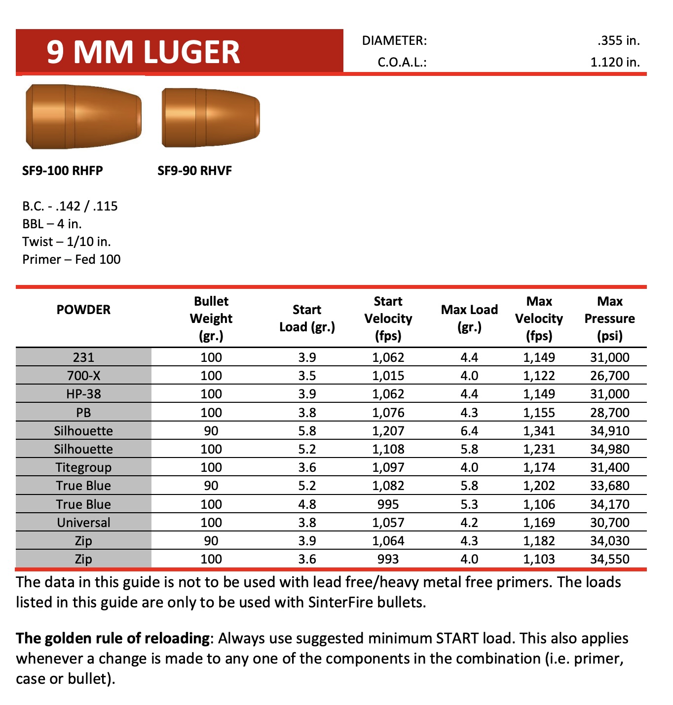 These bullets are a copper-tin composite, and designed to disintegrate when contacting surfaces harder than themselves. See the second picture for manufacturer load data (also available on the Sinterfire website).